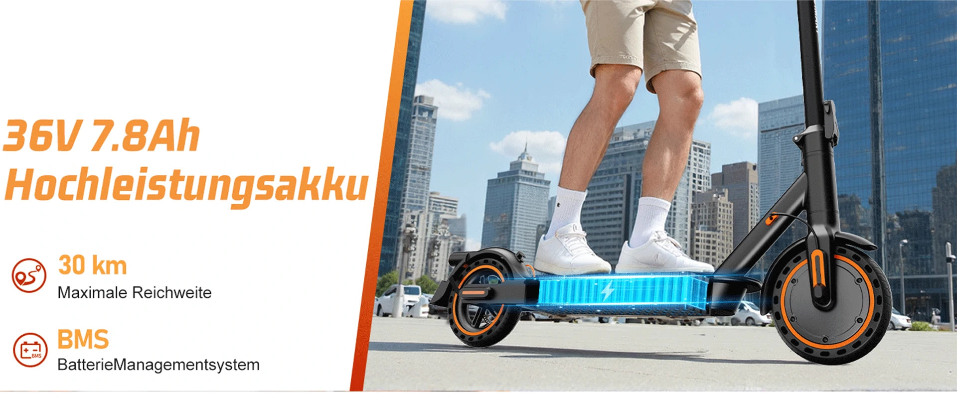 350W Motor | 36V 7.8AH Battery | 25km/h Speed | 20-25km Range